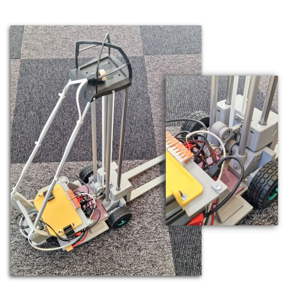 Standing approximately 57 cm tall, this scaled forklift system replicates the core principles of industrial autonomous vehicles in a safe, accessible, and highly adaptable format, making it ideal for hands-on learning in robotics, automation, and intelligent systems.