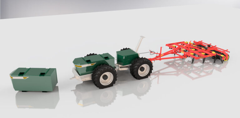 The project began with the creation of a realistic 3D simulator. To make the virtual test environment as close to reality as possible, we scanned an actual field with a drone and recreated it in detail. The simulator works much like a computer game: we send steering commands to the virtual tractor’s wheels, which interact with the simulated ground and respond just like the real machine would. Sensors such as IMUs, GPS antennas, LiDAR, and cameras can be mounted on the simulated tractor, allowing us to test and refine the control system before the physical machine ever turns a wheel.